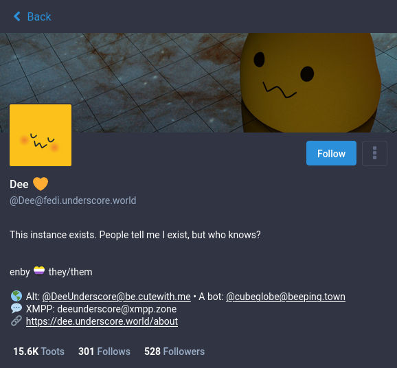However if you come across someone’s public profile hosted on a different server, there’s an obstacle: That server sees you as just another anonymous visitor. Not to worry! You can copy the URL of that profile, or of one of their posts, and then paste that URL into the search function.